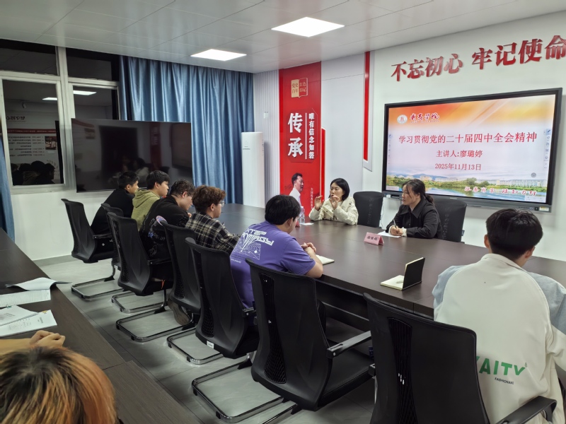 11月9日,学院习近平新时代中国特色社会主义思想读书社在瑞樟5号楼301会议室举行“学习贯彻党的二十届四中全会精神”专题辅导报告会。马克思主义学院廖璐婷博士应邀作专题辅导报告,读书社指导老师徐丽娟主持,全体成员社员20余人现场聆听。