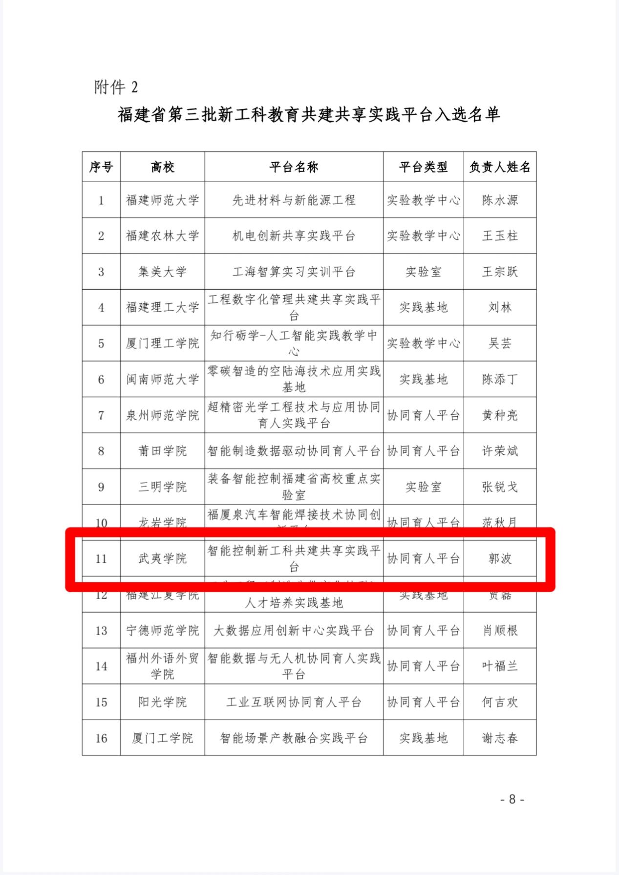 我院智能控制新工科共建共享实践平台入选福建省新工科教育联盟第三批协同育人平台