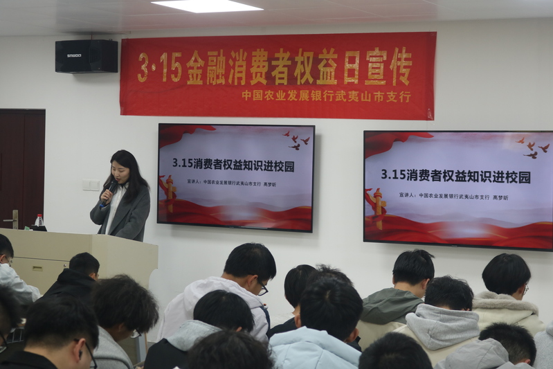 为进一步弘扬和传承雷锋精神,提升学生金融风险防范能力,3月12日,学院团委联合中国农业发展银行武夷山市支行、国家金融监督管理总局武夷山监管支局、中国人民银行南平市分行武夷山营业管理部,共同举办“3·15”金融安全宣讲暨学雷锋志愿服务活动。学院团委副书记徐丽娟、学生会主席团成员及学生代表100余人参加活动。