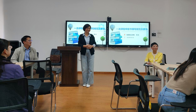 为全面提升一流本科课程建设质量,抓实抓好一流本科课程申报工作,5月17日,教务处举办一流本科课程建设与申报专题培训会。会议邀请马克思主义学院陈文教授对一流课程申报进行指导,教务处沈慧芳处长、邹裔忠副处长及相关人员,2022年校级一流本科课程认定的课程负责人等参加会议。会议由邹裔忠主持。