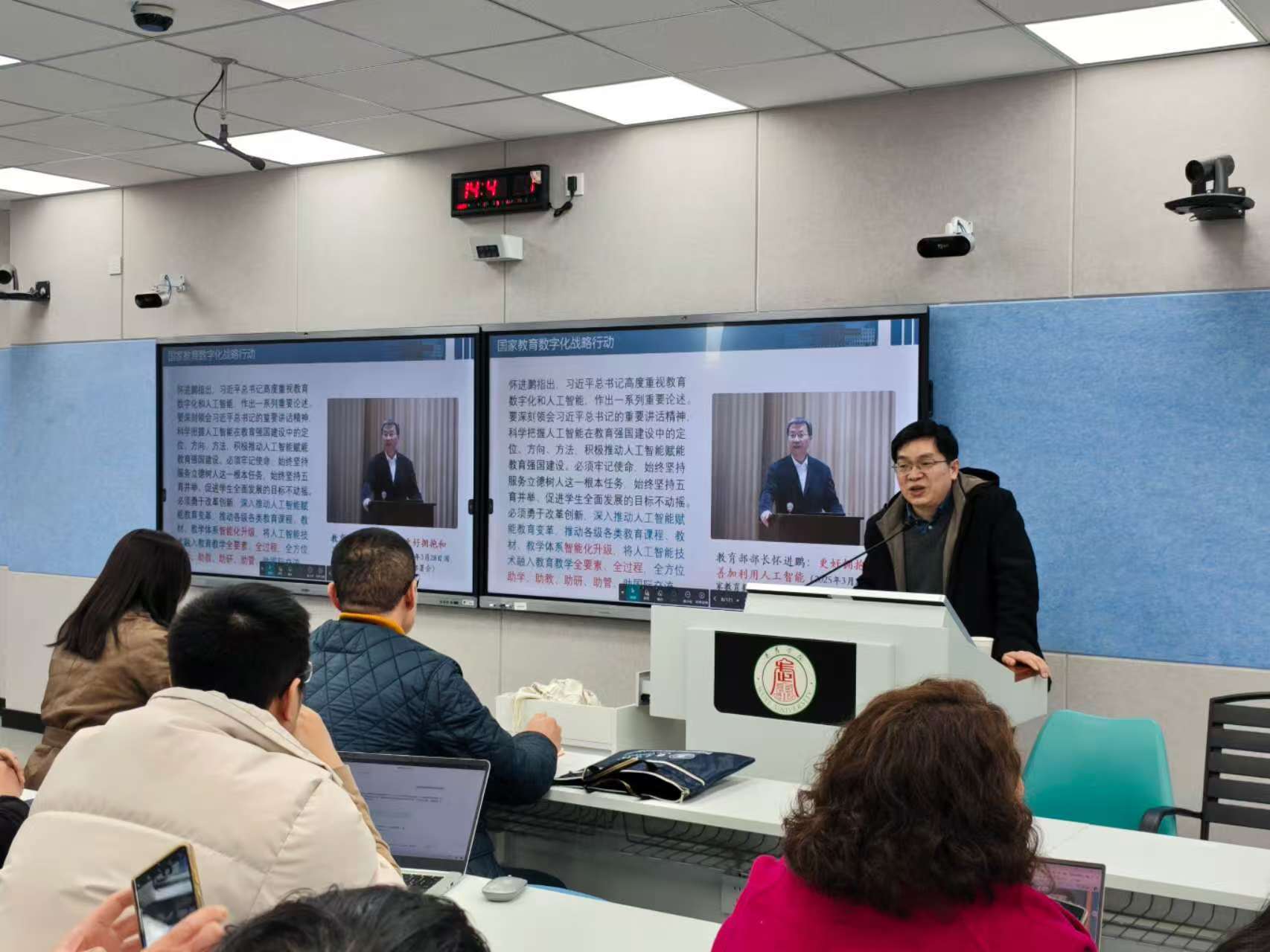 整场讲座内容充实、干货满满,兼具深度与启发性,现场互动积极热烈。此次讲座既是我校落实教育数字化战略行动的具体实践,更是提升教师数字素养、赋能教学创新的重要举措,为持续推动信息技术与教育教学深度融合、赋能教育高质量发展筑牢了坚实根基。