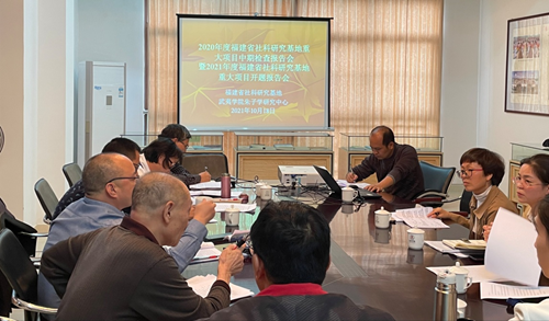 会上,2020年度、2021年度基地重大项目负责人分别汇报了年度进展情况和开题报告,与会专家就深入实施课题研究展开研讨。科研处解读了《福建省社会科学研究基地重大项目管理实施细则》和《福建省社会科学规划项目鉴定结项实施细则》。