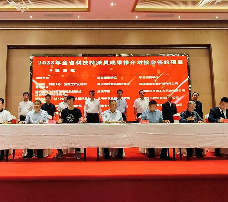 为深入贯彻习近平总书记关于科技特派员制度的重要指示精神,落实省委、省政府重要部署要求,我校扩大科技特派员成果宣传力度,积极组织科技特派员参与企业需求精准对接,促进科技特派员成果示范和推广。10月26日,我校“油桐果高效降解菌堆肥及新模式正岩茶生态栽培技术”和“中国红茶产业提升关键技术研究与示范”两项科研成果参加省科技厅在三明市沙县组织的2023年全省科技特派员成果推介对接活动,其中“油桐果高效降解菌堆肥及新模式正岩茶生态栽培技术”与武夷山市手尚工夫茶业有限公司现场签约,该项目利用武夷学院国家水土保持科技示范园与中央引导地方科技发展专项研发取得的油桐果高效降解菌堆肥及新模式生态茶园建园技术,实现茶园有机肥自给自足,一年四季景色宜人,降低茶园水土流失,提升茶园保水保肥能力和茶叶质量。