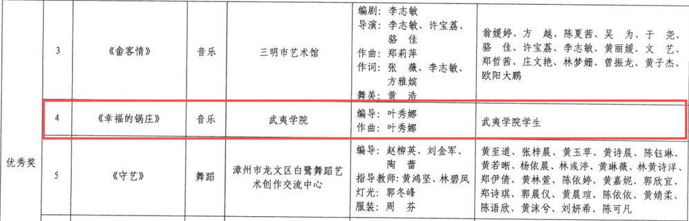 近日,福建省民族与宗教事务厅、福建省文化和旅游厅联合发布《关于福建省第六届少数民族文艺汇演获奖情况的通报》,我校退休教师叶秀娜老师指导的学生团队凭借音乐作品《请茶歌》《幸福的锅庄》荣获“优秀奖”。