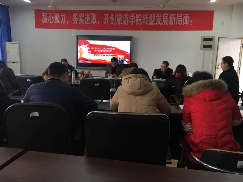 01月05日,旅游学院党委召开“党的十九大对党章十项重要修改”专题学习讨论会,学习党的十九大精神。学习讨论会由旅游学院党委副书记祁少华主持,院党委委员、各支部书记、支部委员、及全体教职工党员参加了学习会。