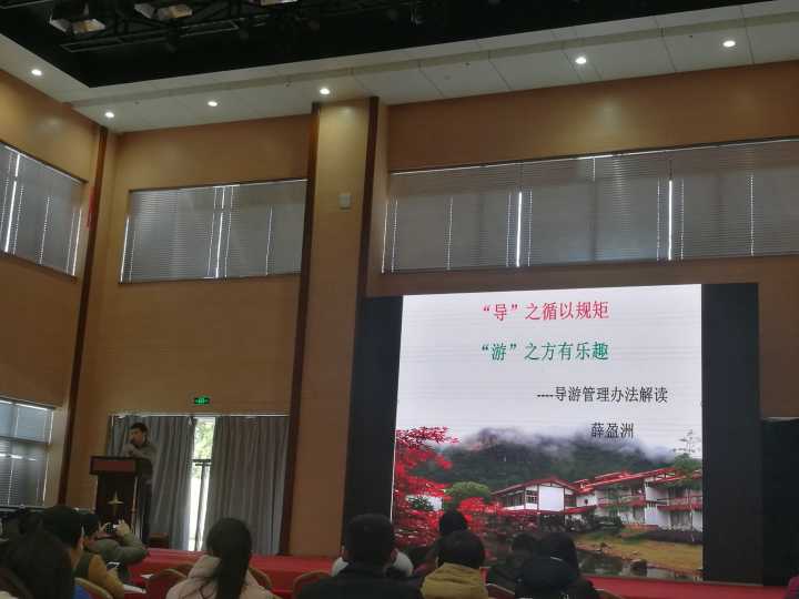 本次培训薛老师以案例入手,围绕导游管理办法制定的背景、依据、过程、原则等问题对导游管理办法进行了解读,从十个方面重点解读了导游管理办法的新变化、新动态、新要求。