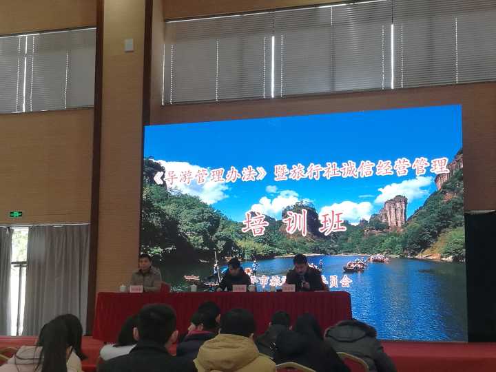 2018年2月1日、2日,我院薛盈洲老师应南平市旅游发展委员会邀请,以“导之循以规矩,游之方有乐趣”为题目,对南平市2200多名导游人员、各县市旅游局负责人和旅行社工作人员展开了为期两天的培训。