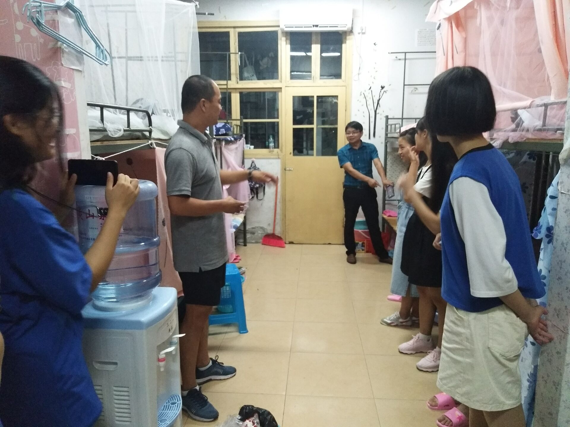 为了进一步做好新生入学教育工作,最快的适应大学生活。2017年9月7日虽然离正式报道时间还有两天,但是已经有部分学生从五湖四海来武夷学院报道。旅游学院学工科科长林平先,18级辅导员刘和群及18级各专业助理辅导员走访新生宿舍。
