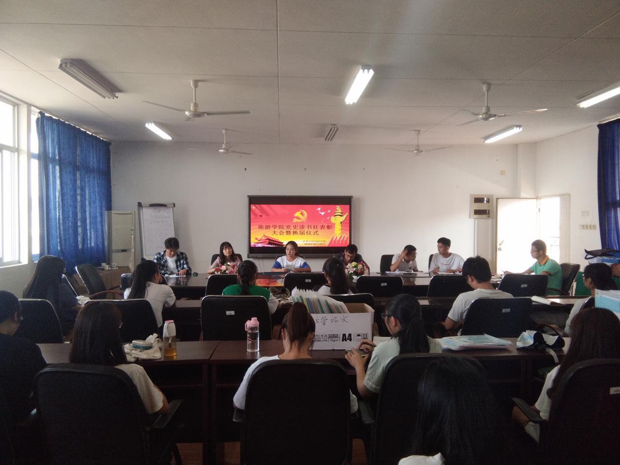 2018年9月29日下午,旅游学院中共党史读书社表彰大会暨换届仪式于瑞樟11号教学楼5楼会议室举行。会议由组织员办朱明主持,院党委副书记祁少华出会议席,全体读书社成员参加会议。