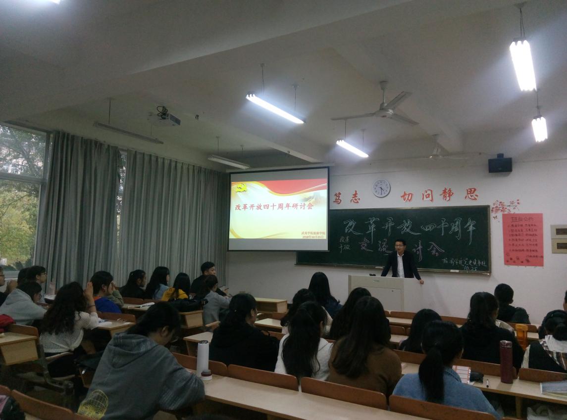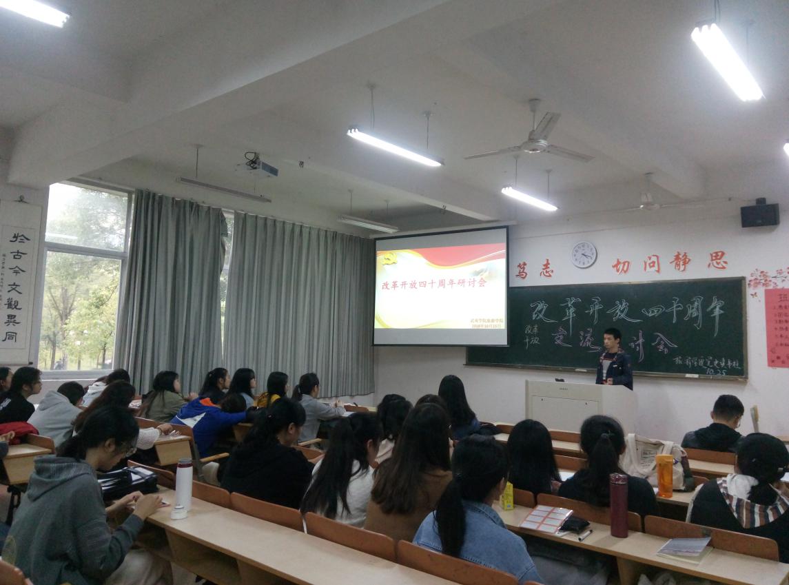 10月25日下午,旅游学院党史读书社于瑞樟11-109召开庆祝改革开放40周年学习交流会,会议由组织员办朱明老师主持,党史读书社全体成员参加会议。