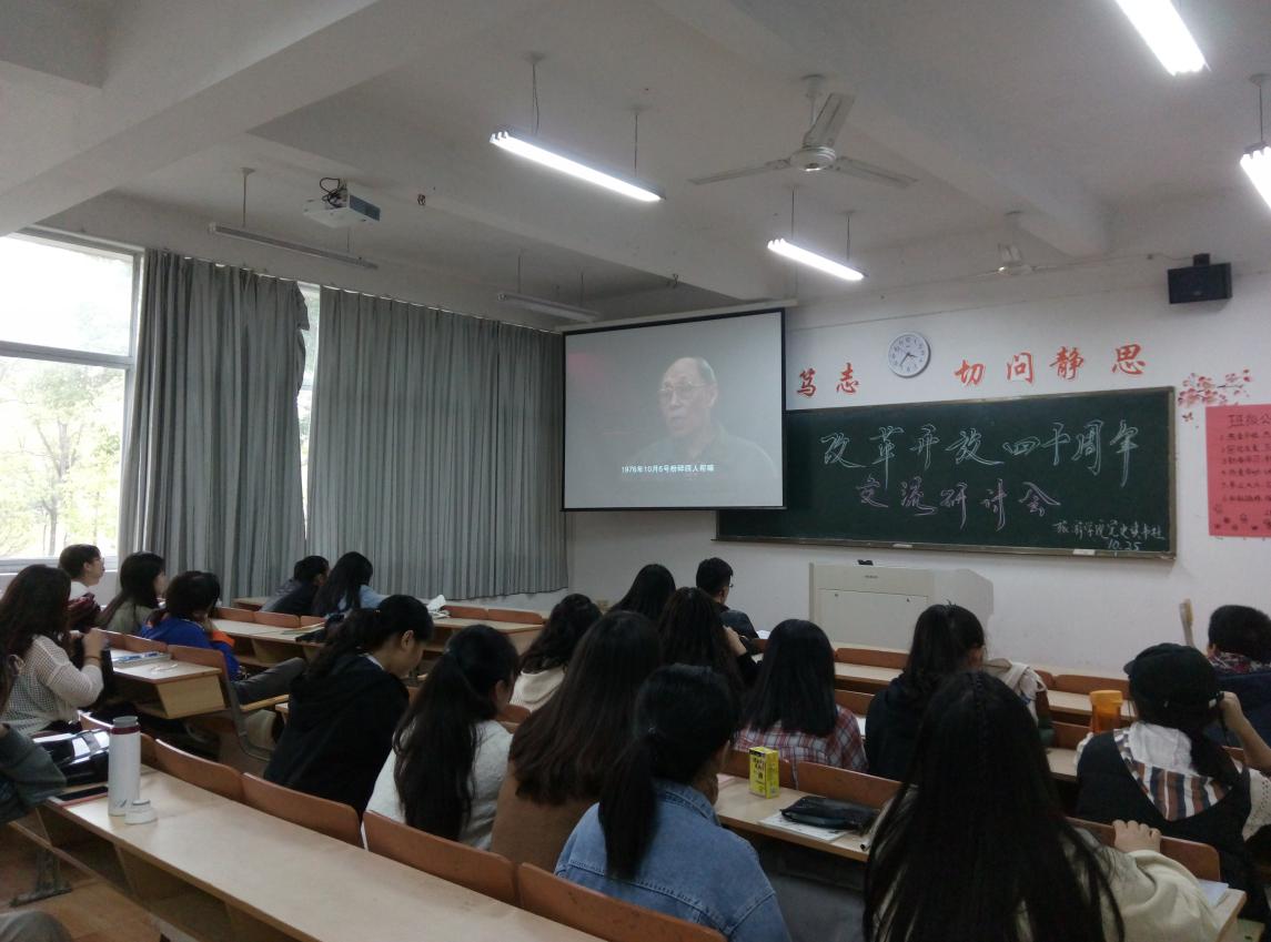 首先,读书社全体成员观看了“千人献礼改革开放40周年”系列纪录片。回首过去,我们40年的风雨历程,岁路途艰辛,但是硕果累累。改革从城市到农村、从东部到西部、从经济领域到其他各个领域全面展开,逐步深化,使中国社会发生全方位的历史性转变。随后,读书社成员进行了交流探讨,同学们结合自己的亲身实际,抒发了自己对改革开放40周年的感悟与领会。