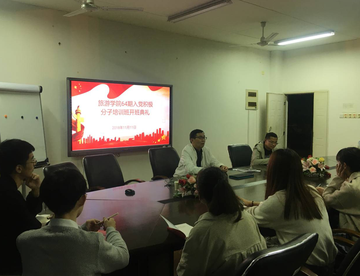 2018年11月11日晚,旅游学院第64期入党积极分子培训班开班式在瑞樟11五楼会议室举行。旅游学院党委副书记祁少华、党委组织员办朱明及第64期入党积极分子培训班全体学员参加了开班式。