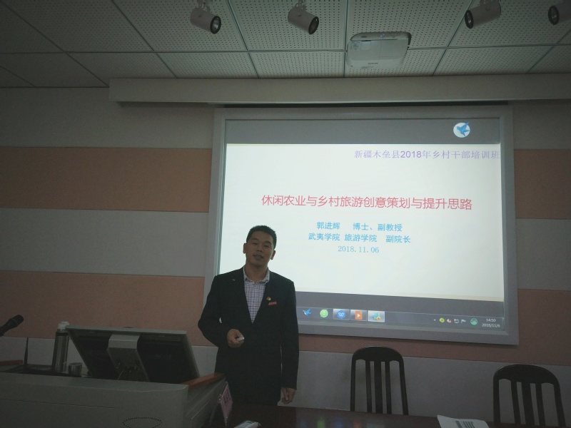 2018年11月6日,旅游学院应南平市委党校邀请委派专业教师为南平市对口援建单位新疆木垒县干部开展旅游专题培训。郭进辉博士结合木垒县乡村旅游发展现状,为学员讲解了《休闲农业与乡村旅游创意策划与经营提升》、彭夏岁结合木垒县创建全域旅游的现状,做了《全域旅游发展路径探析》专题讲座。旅游学院今后将加大力度支持服务地方旅游产业发展咨询服务工作。