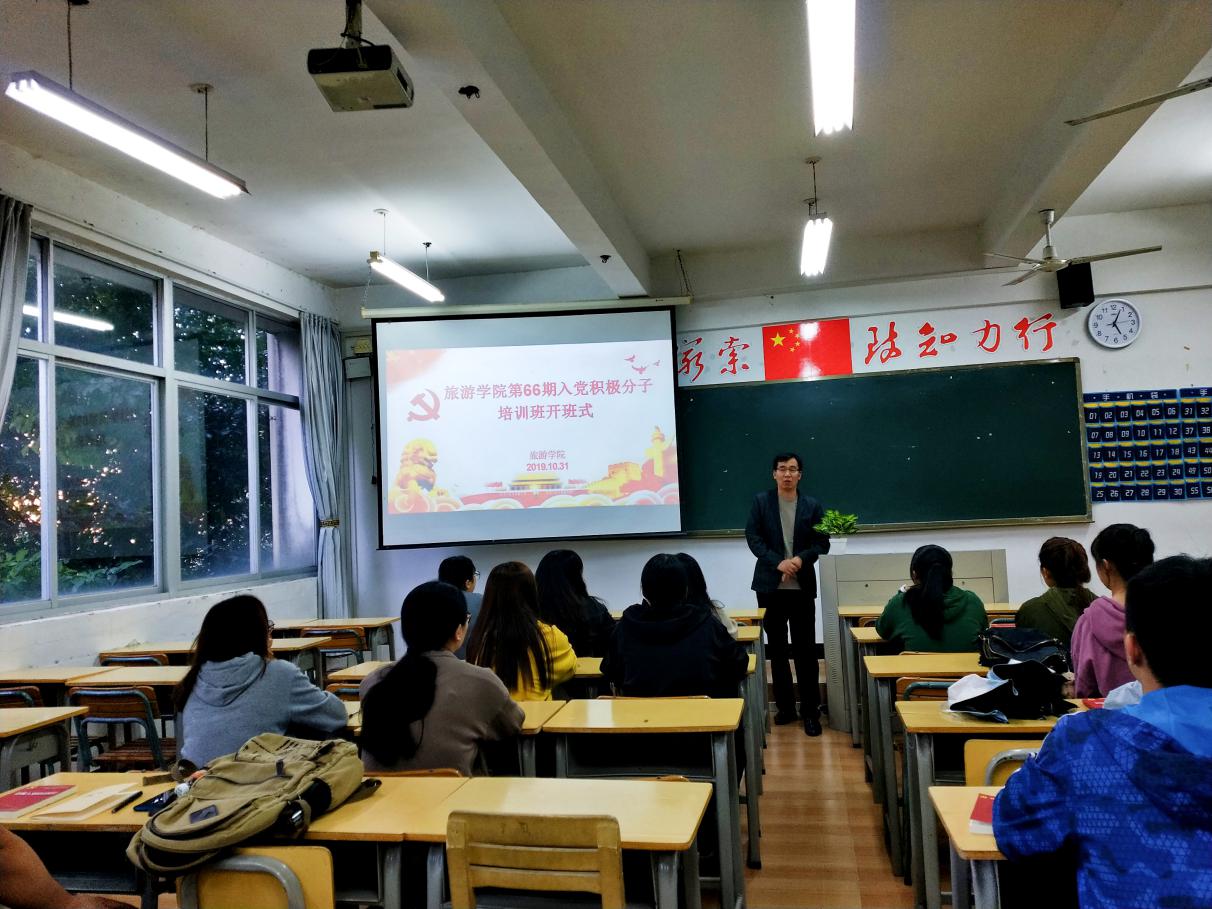 10月31日下午,旅游学院第66期入党积极分子培训开班仪式在瑞樟11-306举行。参加此次开班仪式的有党委书记祁少华、组织院办朱明老师及本期28名入党积极分子。