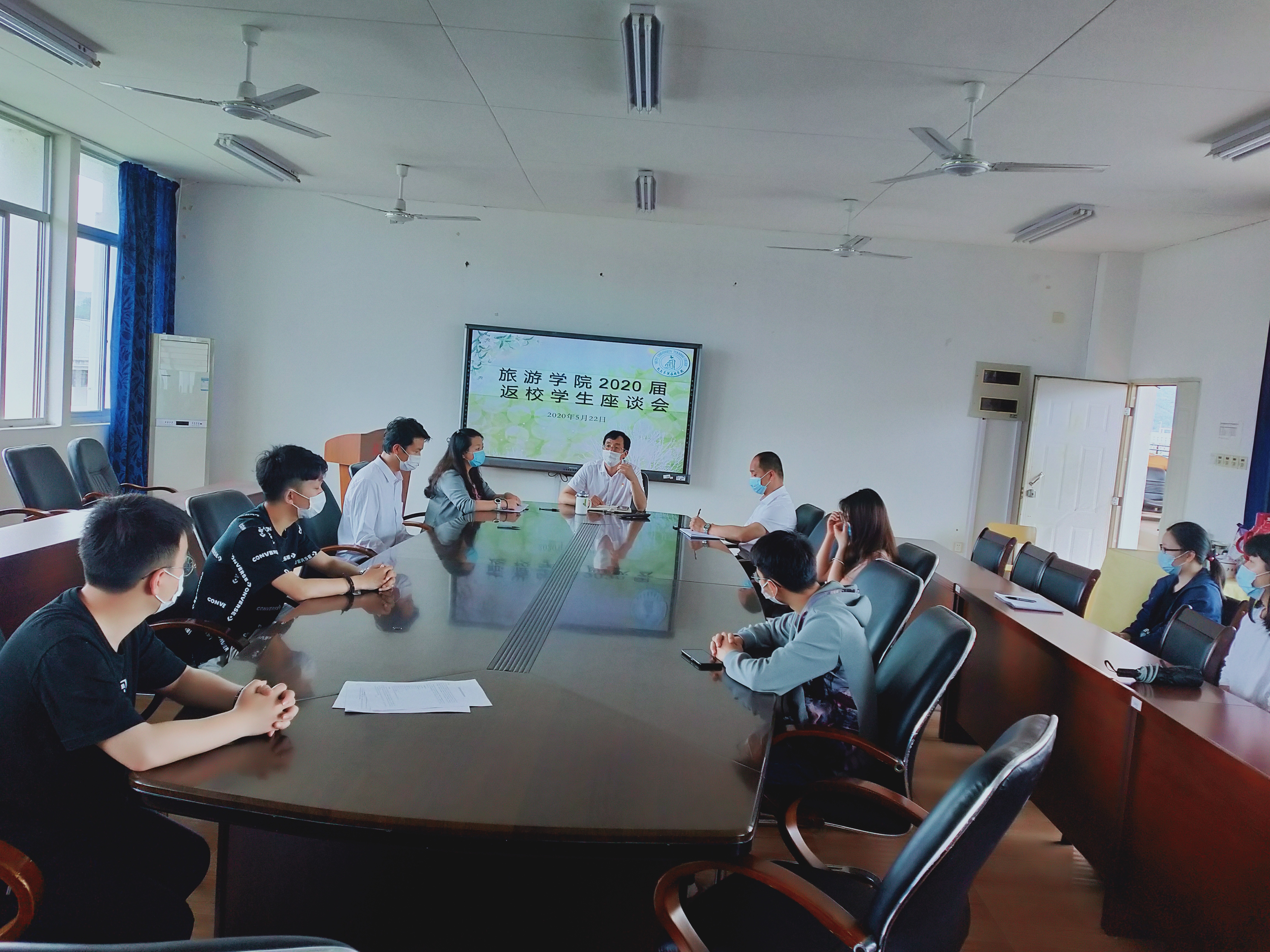 5月22日,旅游学院召开首批返校毕业生座谈会,学院党委书记祁少华、学工科长林平先,2016级辅导员林丹丹以及旅游学院首批返校毕业生参加了本次座谈。