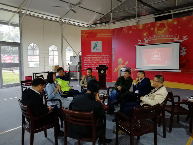 2019 年 10 月27日,旅游学院兰宗荣教授、祁少华书记参加了武夷新青年文化交流中心在武夷山毅路征途青少年研学营地举办的茶话会。武夷新青年文化交流中心为福建省省级示范性“青年之家”综合服务平台,为广大青少年提供素质教育服务、公益志愿服务、就业创业服务、青年文化交流等个性化服务需求。武夷新青年108社区为武夷山提供文旅产业发展智库服务的青年自发性组织。社区成员由来自武夷山各行业从业者、高校及科研机构的学术专家志愿加入,为武夷山文旅产业发展提供产业调查、信息发布、政策研究、产业政策立法技术咨询。举办产业相关会议、学术研讨、交流活动、文旅项目策划等实体业务。茶话会由知行循理研学服务有限公司总经理黄建华主持,福建省陶艺名人、武夷山市建窑文化研究会负责人杨义东作了建窑文化的主旨报告。之后旅游学院兰宗荣教授、祁少华书记、高级导游武夷山市旅发委干部杨少勇及其他与会者互相交流了对文化遗产传承及与旅游融合的看法。