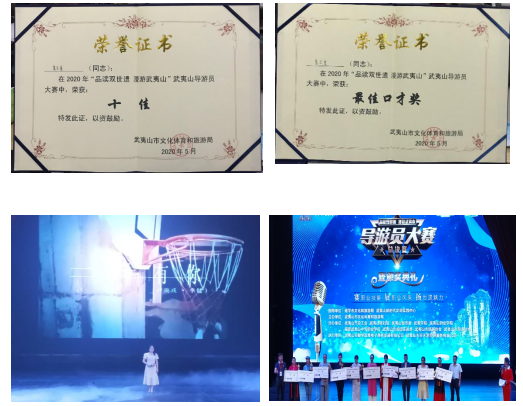 2020年5月23日,“品读双世遗·漫游武夷山”导游员大赛总决赛在武夷山音乐厅展开角逐。我院旅游管理专业学生袁兰香在本次比赛中表现不俗,经过导游讲解、才艺比拼和应变能力三轮考核后,荣获武夷山导游员大赛“十佳”荣誉称号。与此同时,她独特的嗓音和精彩的讲解得到评委和观众一致好评,荣获本次导游员大赛“最佳口才奖”。袁兰香同学的成功,是我院人才培养成功的重要体现,展现出我院学生较高的专业素质和专业素养。