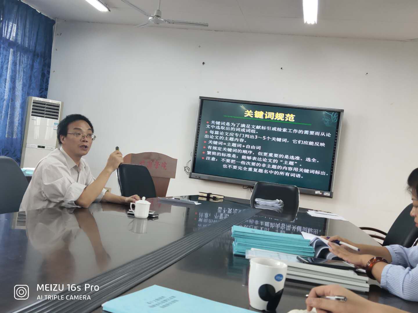 熊孝存院长对杨伦增教授到来表示欢迎,并对全院教师传达了此次讲座的重要性,强调老师要认真学习,以提升自身的论文写作技巧,争取发表高质量的研究成果。并对论文综述、摘要、关键词、引言和正文内容的写作基本范式开展专题讲座报告,报告内容深入浅出,娓娓道来,为大家上了一堂非常精彩的论文写作辅导课。