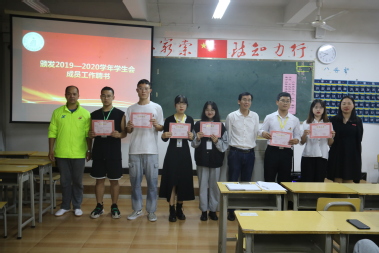 最后,旅游学院党委书记祁少华、学工科长林平先、分团委负责人陈喜花为2019-2020学年学生会成员颁发了工作聘书。
