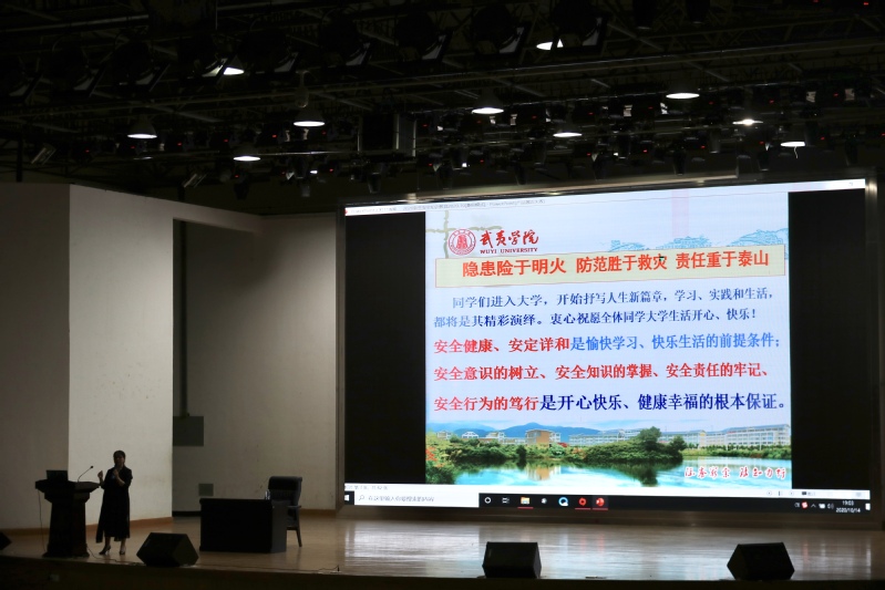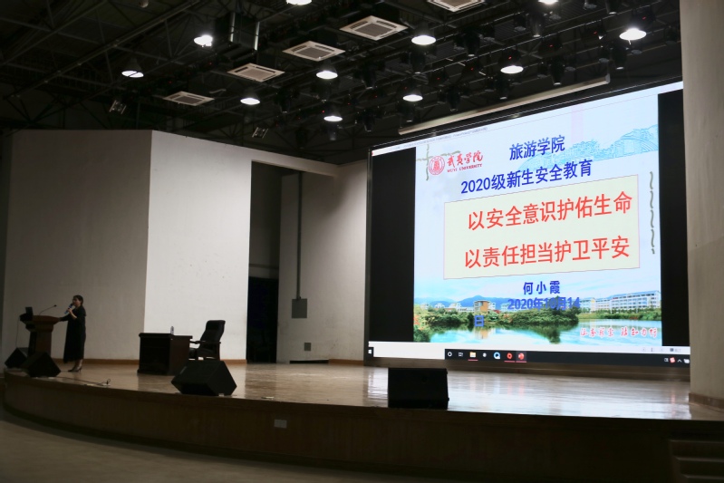 10月14日晚,旅游学院新生安全教育讲座在大学生活动中心报告厅顺利召开。旅游学院党委副书记何小霞担任主讲,新生辅导员林丹丹及2020级全体新生到会聆听。