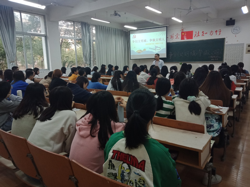 首先朱明老师对“争创文明城,争做文明人”主题学习做了详尽介绍,引导大家从自身做起,践行文明规范,展示文明风采,促进文明校园创建。随后,与会同学围绕文明出行、文明上网、文明就餐等与学习生活息息相关的方面进行了深入讨论,并各自谈了不足之处及相关的改进措施。
