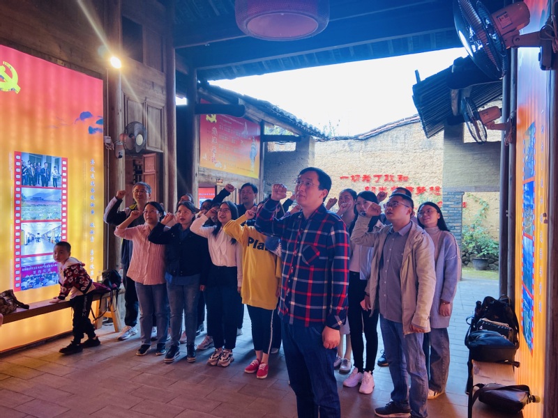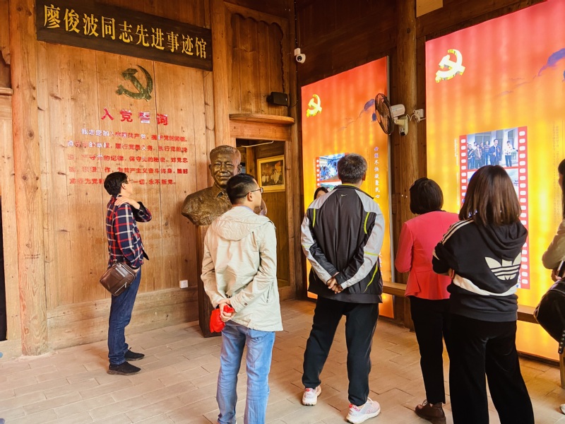 旅游学院教工党员一行前往政和县石圳村参观廖俊波先进事迹馆,并在此庄严宣誓。事迹馆真实生动地展示了廖俊波同志为民务实清廉、忠诚干净担当的一生。通过参观学习,大家更深刻地感受到廖俊波同志对党忠诚、心系群众、忘我工作、无私奉献的优秀品质,对廖俊波同志的先进事迹有了更深层次的认识。同志们纷纷表示,要以廖俊波为榜样,当先锋、作表率,在各自岗位上作贡献。