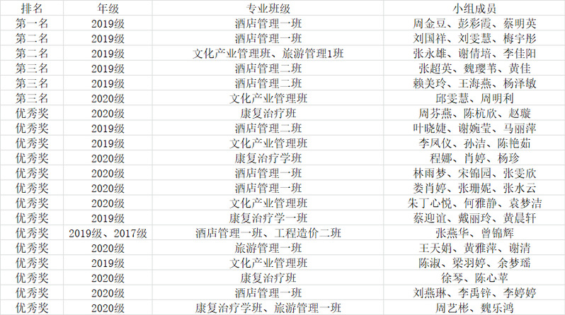 附旅游学院党史知识竞答活动获奖名单: