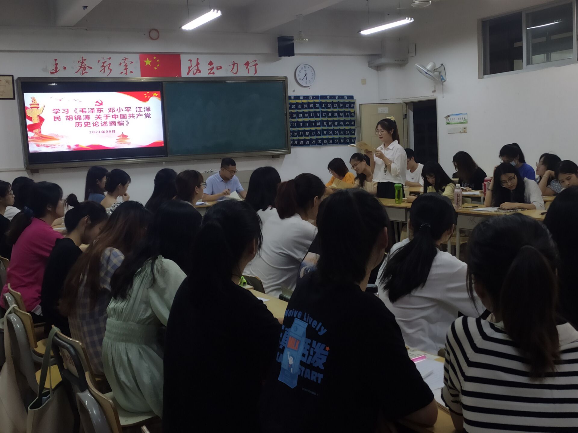 学习会上,第三党支部书记陈喜花老师谈到,在领导中国革命、建设、改革过程中,毛泽东同志、邓小平同志、江泽民同志、胡锦涛同志围绕中国共产党历史发表了一系列重要论述,深刻阐释了党在各个历史时期的光辉历程、理论成果、宝贵经验和伟大精神。我们要重视学习和总结历史,善于借鉴和运用历史经验,发扬党的优良传统。