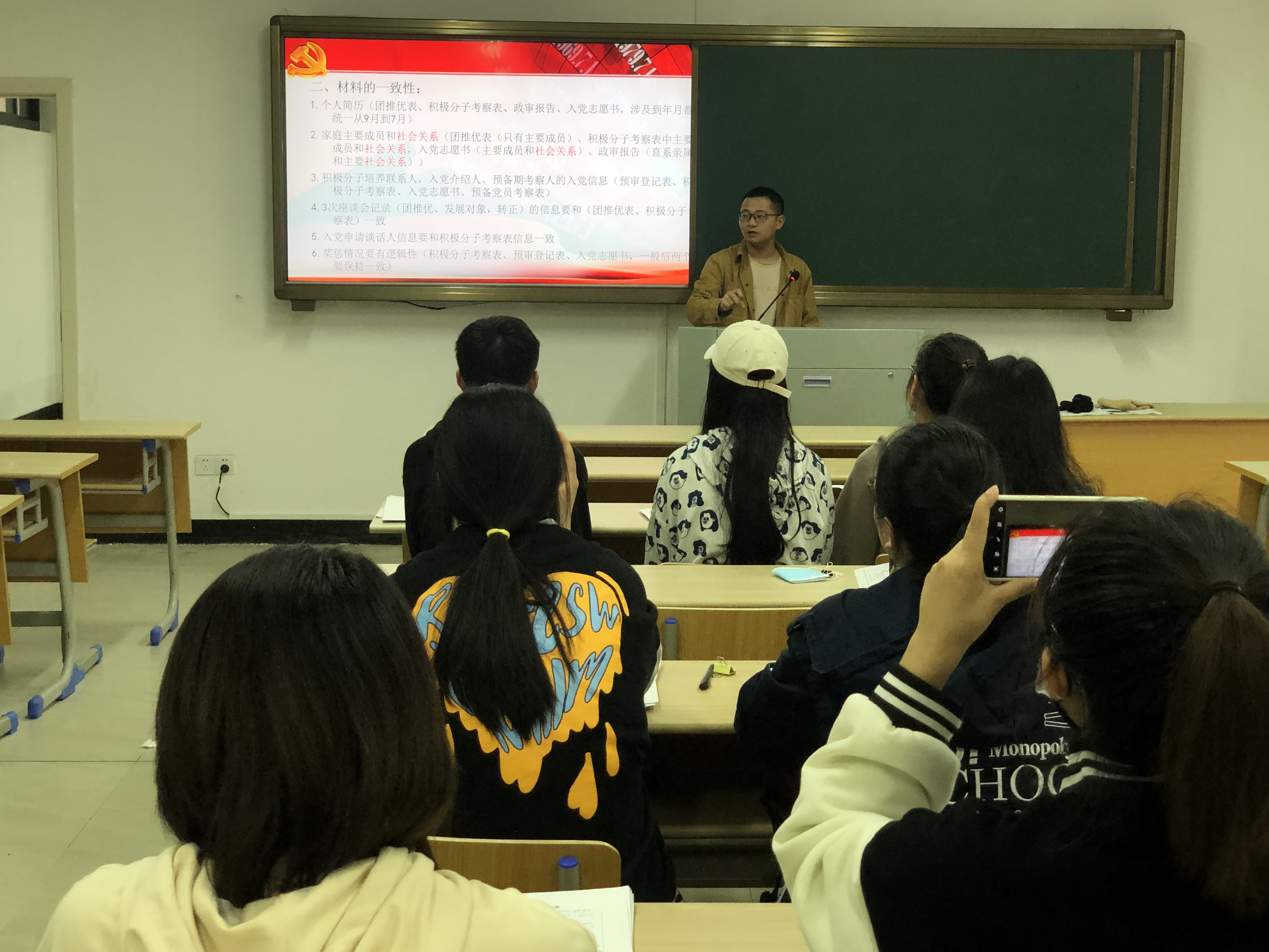 会上,朱明老师详细阐述了规范填写入党材料的目的和重要意义,并就如何填写入党材料为大家进行了详细的讲解,特别是入党材料中出现问题较多的地方,进行了一一说明。他强调,规范填写入党材料是发展对象对于入党应有的态度,要求大家必须高度重视。