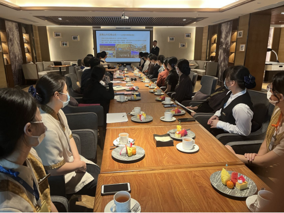 座谈会上,武夷山悦华酒店人资总监张瑞军介绍了酒店经营情况和校企合作历史,高度肯定了我院毕业生、实习生的工作态度和工作能力。学生代表熊慧敏、崔昊、李禹欣等结合自身实习和就业情况,交流实习感受和职业发展规划。旅游学院党委书记祁少华、副书记何小霞、副院长郭伟锋等分别介绍了当前就业形势和行业发展前景,鼓励学生转变就业观念,充分利用毕业实习累积的工作经验,抓住就业机会,积极就业。最后,庄祥生书记感谢企业方为我校毕业生提供实习、就业平台,希望双方在现有合作基础上,进一步拓宽合作广度和深度,深化校企合作,推动我校毕业生更充分更高质量就业。同时鼓励毕业生要脚踏实地,仰望天空,调整就业心态,要先就业再择业,及早落实岗位,无论在任何岗位都要敬业、乐业。