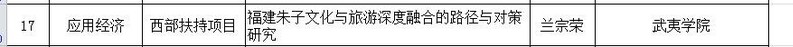 据福建省社会科学规划办公室公布的2022年度福建省社会科学基金项目立项结果,我院兰宗荣教授申报的项目《福建朱子文化与旅游深度融合的路径与对策研究》课题获批西部扶持项目。近年来,我院高度重视科研工作,打造创新团队,积极鼓励教师做好应用型研究,为地方经济社会发展做出贡献。该项目以朱子文化和旅游融合进行研究,是积极相应文旅融合发展新趋势,也是为保护地方文化做贡献。
