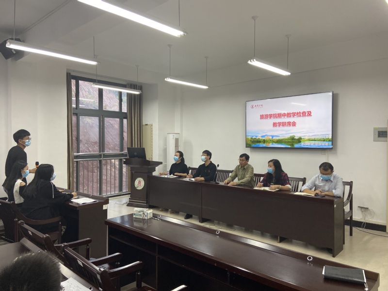 为了进一步落实学院期中教学检查安排,2022年11月10日,旅游学院召开教学联席会。院党委书记祁少华、副院长郭伟锋、学工科长刘蓉、教科办负责人张庆、辅导员林丹丹老师、教科办马千里老师、旅游学院各班级学委、学生代表参加会议。