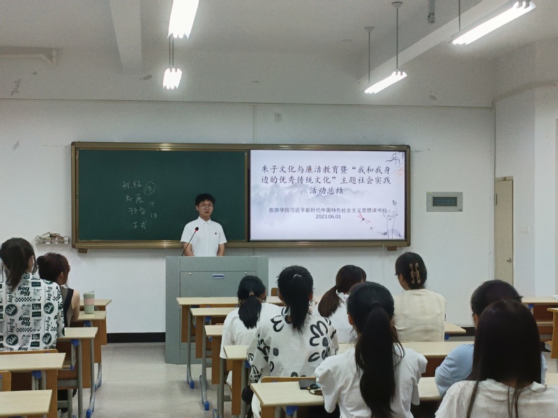 为深入开展主题教育,引导入党积极分子深刻领悟“两个确立”的决定性意义、深入领会“两个结合”的重要内涵,把马克思主义的精髓同中华优秀传统文化贯通起来,6月1日,旅游学院习近平新时代中国特色社会主义思想读书社在同文7-207教室开展朱子文化与廉洁教育活动,读书社社长魏能轩主持活动,第73、74期入党积极分子参加。