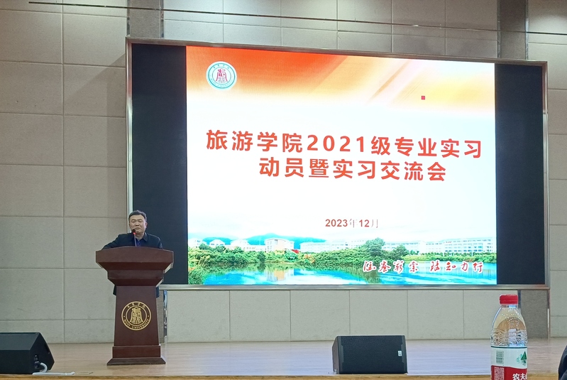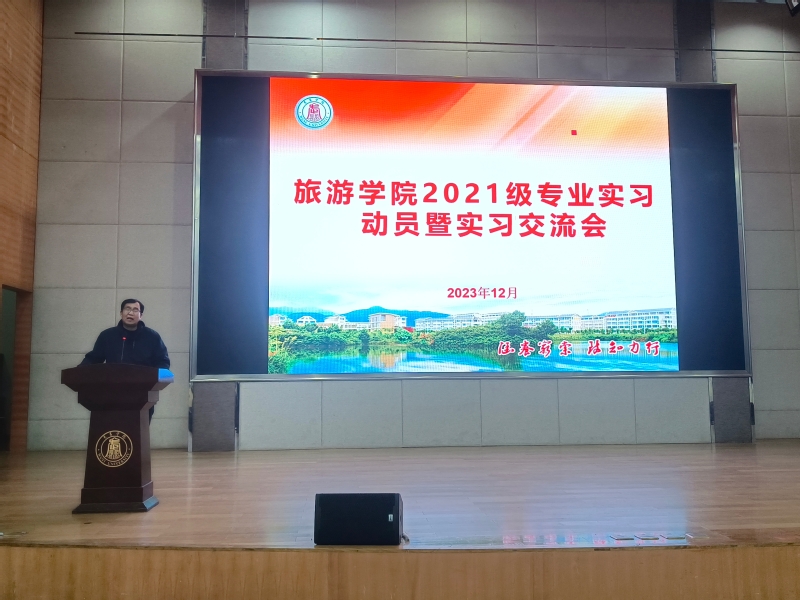 2023年12月13日,我院于在同文报告厅组织召开2021级专业实习动员暨实习交流会。会议由李云珠老师主持,旅游学院党委书记祁少华、院长熊孝存、副书记张达青、旅游管理系主任林开淼、酒店管理系主任林育彬、文化产业管理系主任兰宗荣、学工科辅导员出席会议,2021级旅游管理、酒店管理(含闽台班)、文化产业管理专业学生参加。