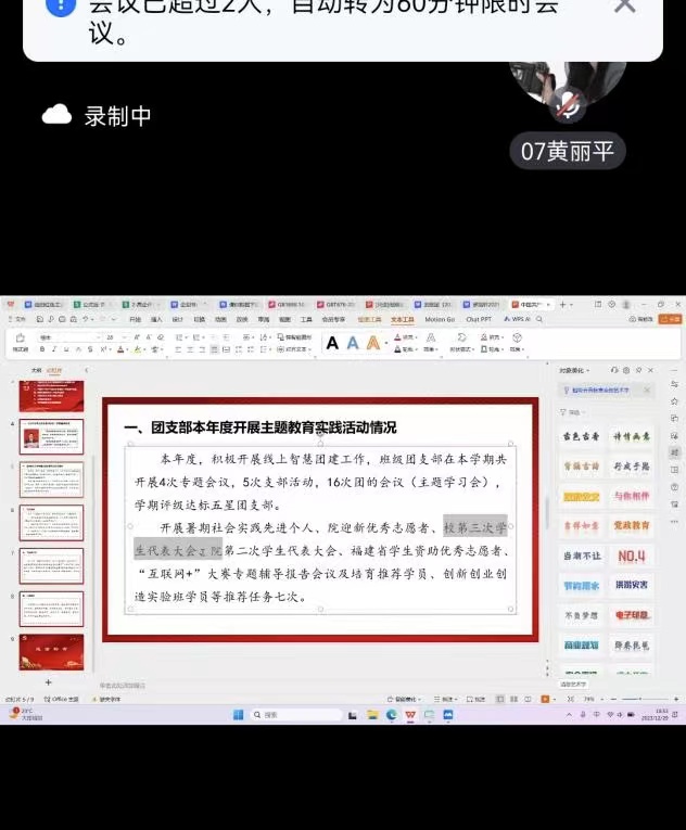 12月29日下午,20级旅游管理(4+0)1班召开团员和青年主题教育组织生活会,院团委位亚路老师、支部全体团员参加会议,会议由班级团支书罗培轩同学主持。