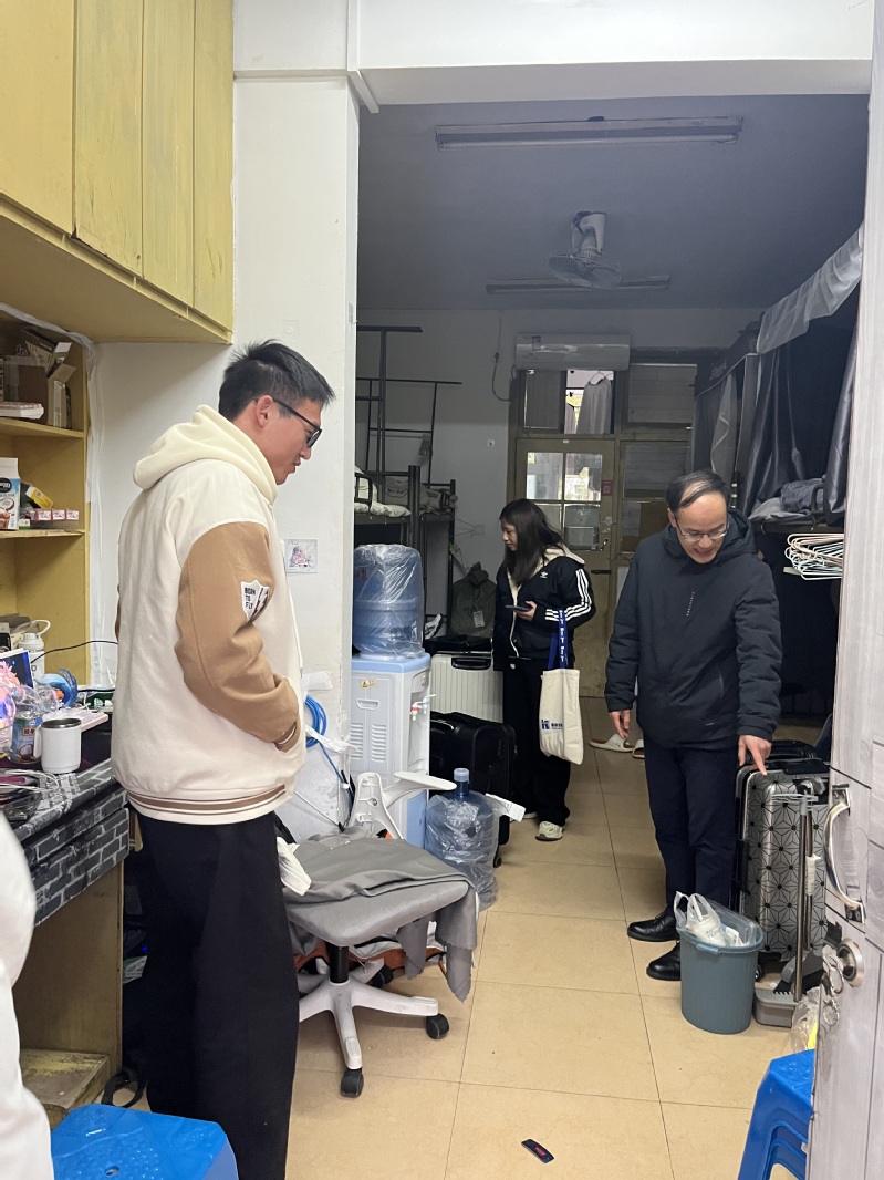 2月27日傍晚,学院党委书记祁少华、副书记张达青带队,组织辅导员深入学生宿舍走访,了解学生返校情况,排查宿舍安全隐患。