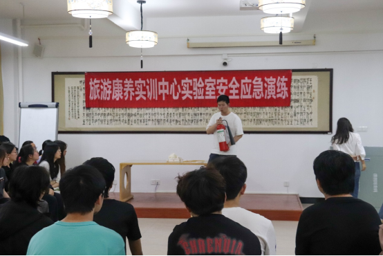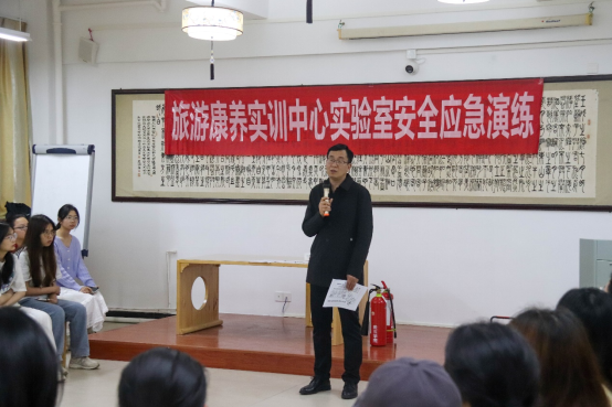 为贯彻“预防为主,防消结合”的方针,切实提高我院师生消防、实验室安全意识,增加自救、互救意识及疏散能力,有效防范和坚决遏制安全事故发生。旅游康养实训中心于4月24日下午在同文8实验室开展实验室安全应急演练。学院党委书记祁少华祁少华强调了实验室安全应急演练的重要性。我院部分师生代表以及实验室管理人员参与演练。