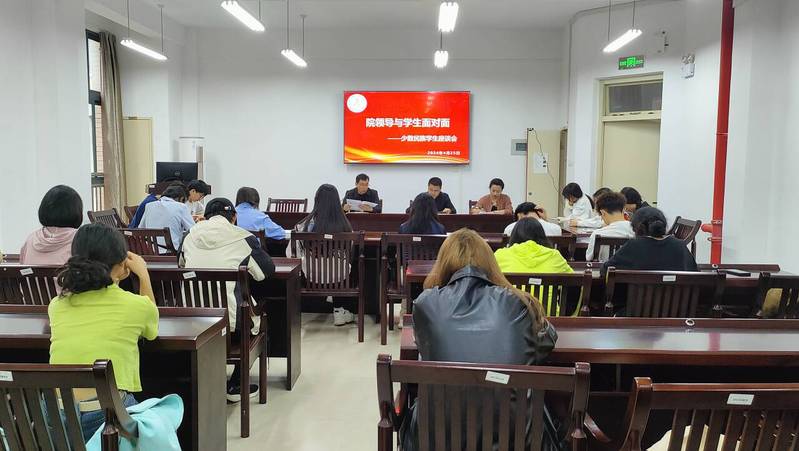 4月25日下午,我院在同文7-211召开了少数民族学生座谈会,党委书记祁少华、副书记张达青、统战委员彭夏岁、学工科负责人刘蓉出席会议。