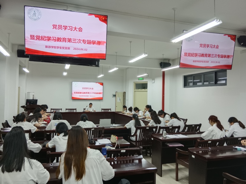 为深化党纪学习教育学习效果,进一步引导学生党员学纪、知纪、明纪、守纪,6月2日晚,旅游学院第四党支部在同文7-211召开党员学习大会,专题学习党纪学习教育内容,第四党支部书记李元芳主持会议,全体党员参加。