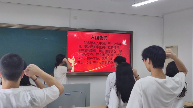 入团仪式在庄严的国歌声中拉开帷幕,江灵枝同学宣读了2023年下半年新发展团名单,全体与会人员以热烈的掌声向新团员表示祝贺,全体团员佩戴团徽,面向团旗庄严宣誓。