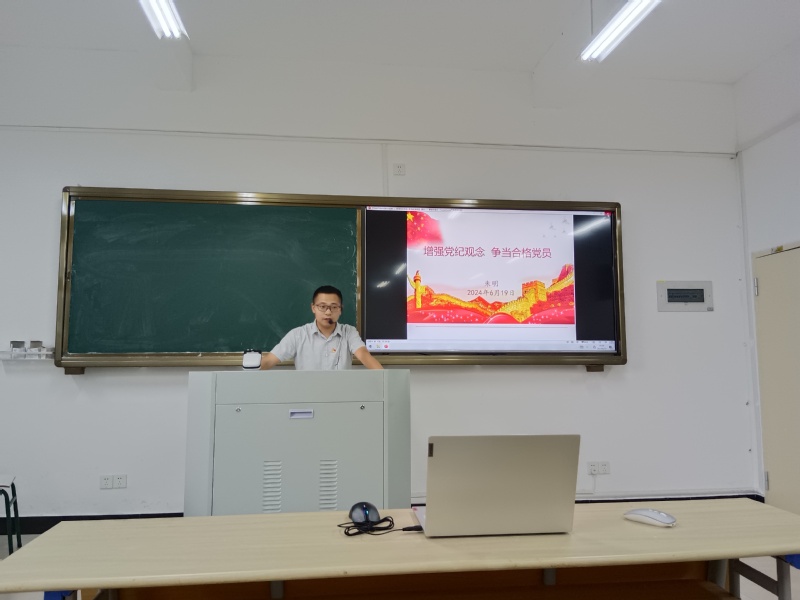 第五党支部书记朱明同志以“增强党纪观念,争当合格党员”为题给全体党员上党课。课上通过什么是党的纪律,为什么要学习党的纪律、党的纪律特征与形式、党的纪律基本内容、如何严格遵守党的纪律等方面给全体党员详细讲解了党纪学习教育的相关内容,激励学生党员发挥先锋模范作用,深刻认识全心全意为人民服务的根本宗旨,以实际行动影响和带动身边的人。