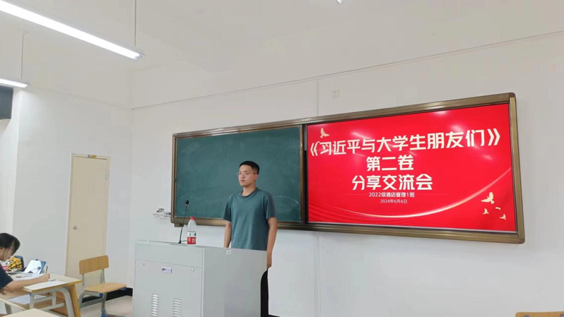 为深入学习贯彻习近平总书记关于青年工作的重要思想,引导广大青年坚定理想信念,不断践行使命担当,6月6日晚在同文7-107,22级酒店管理1班开展《习近平与大学生朋友们》第二卷分享交流会。