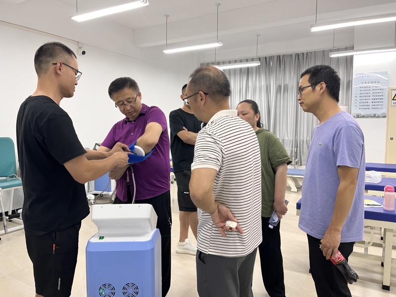 2024年7月8日下午,旅游康养实训中心在同文7-106物理治疗室开展康复技能人才基地建设项目仪器设备专项培训,康复治疗系全体教师、实验室管理人员参加。