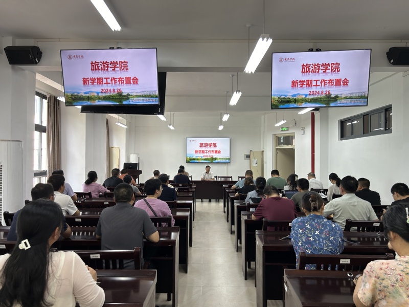 8月26日,旅游学院召开全体教职工新学期工作部署会议,党委书记祁少华、郭伟锋副院长(主持行政工作)对本科教育教学审核评估、硕士点招生、新专业申报等重要事项进行了全面部署。