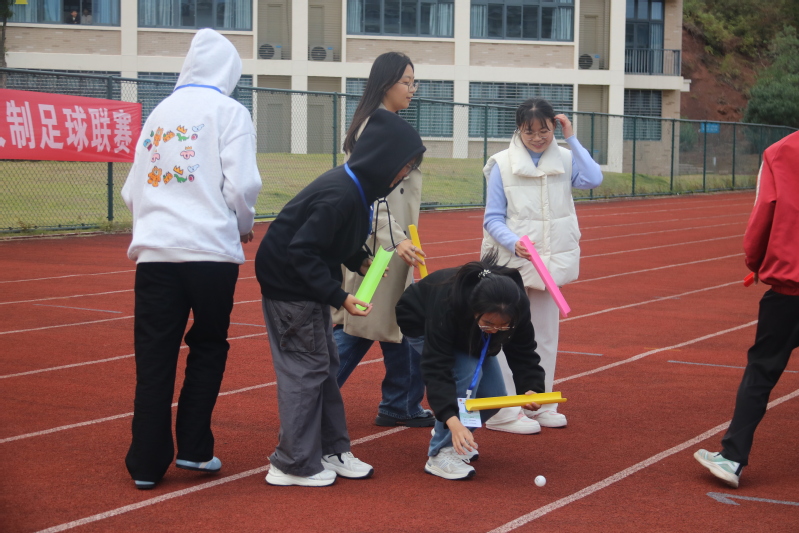 活动当天,学生会成员被精心分成11个队伍,每个队伍都充满了斗志与激情,准备在各项游戏中一展身手。比赛项目丰富多样,包括考验团队协作能力的“两人三足”、充满趣味性的“珠行万里”、需要智慧与敏捷并存的“一块五毛”,以及考验音乐素养与反应速度的“听歌识曲”。这些游戏不仅让参与者们乐在其中,更在欢声笑语中锻炼了身体,增强了团队凝聚力。