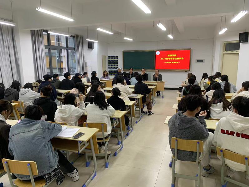 11月21日下午,学院在同文7-207室召开2025届考研学生座谈会,学院领导和全体毕业班辅导员及参加考研的50多名学生参加会议。