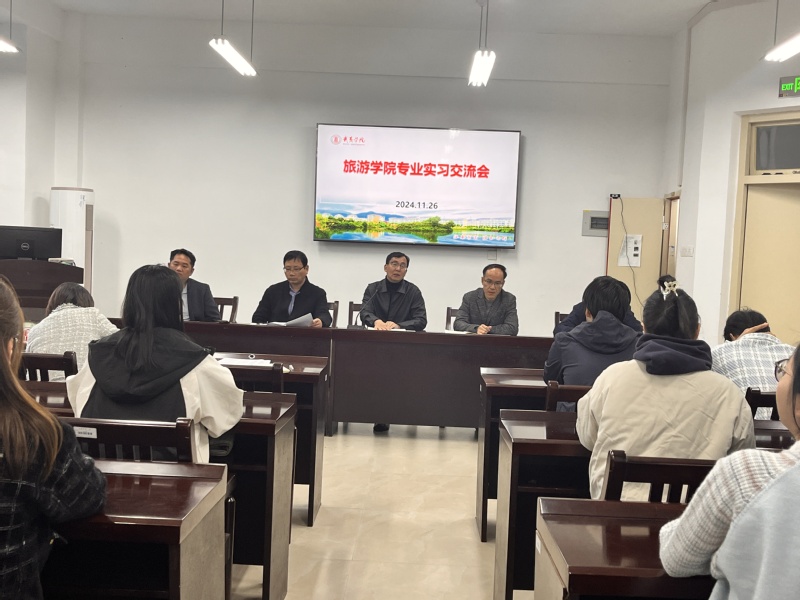 11月26日下午,旅游学院在同文7-211会议室召开专业实习交流会。会议由旅游学院副院长郭伟锋主持,院党委书记祁少华、副书记张达青、各专业系主任、实训中心管理人员及2021级实习学生代表参加。