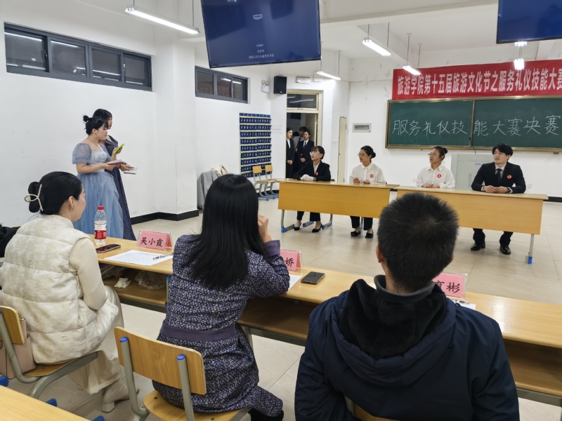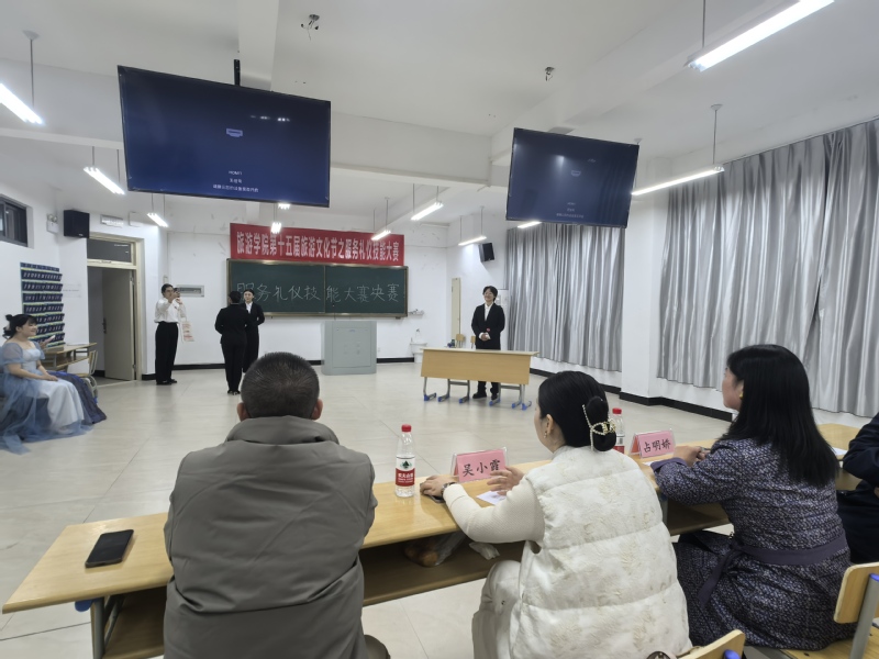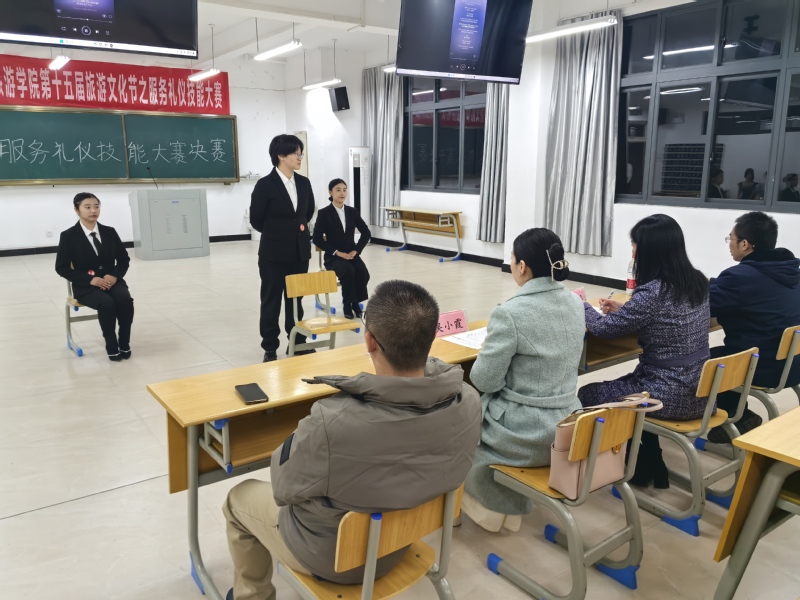 2024年12月2日晚,为全面提升选手的服务礼仪水平,旅游学院在酒店服务技能大赛中特别设置了服务礼仪项目,并在同文8-102教室精彩上演。此次比赛荣幸地邀请到了林育彬、占明娇、吴小霞三位老师担任评委。