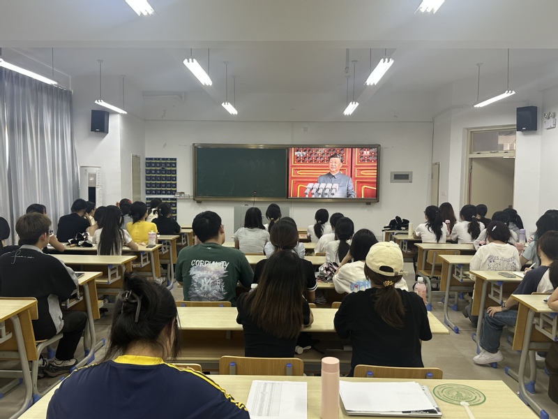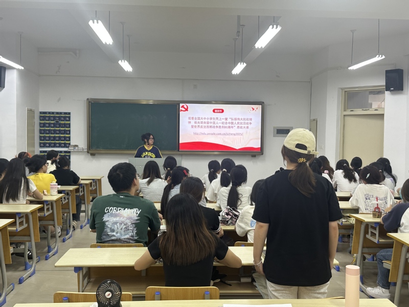 为纪念中国人民抗日战争暨世界反法西斯战争胜利80周年,2025年9月18日下午,旅游学院习近平新时代中国特色社会主义思想读书社在同文教室7-207开展主题教育学习会,学院全体入党积极分子参加。