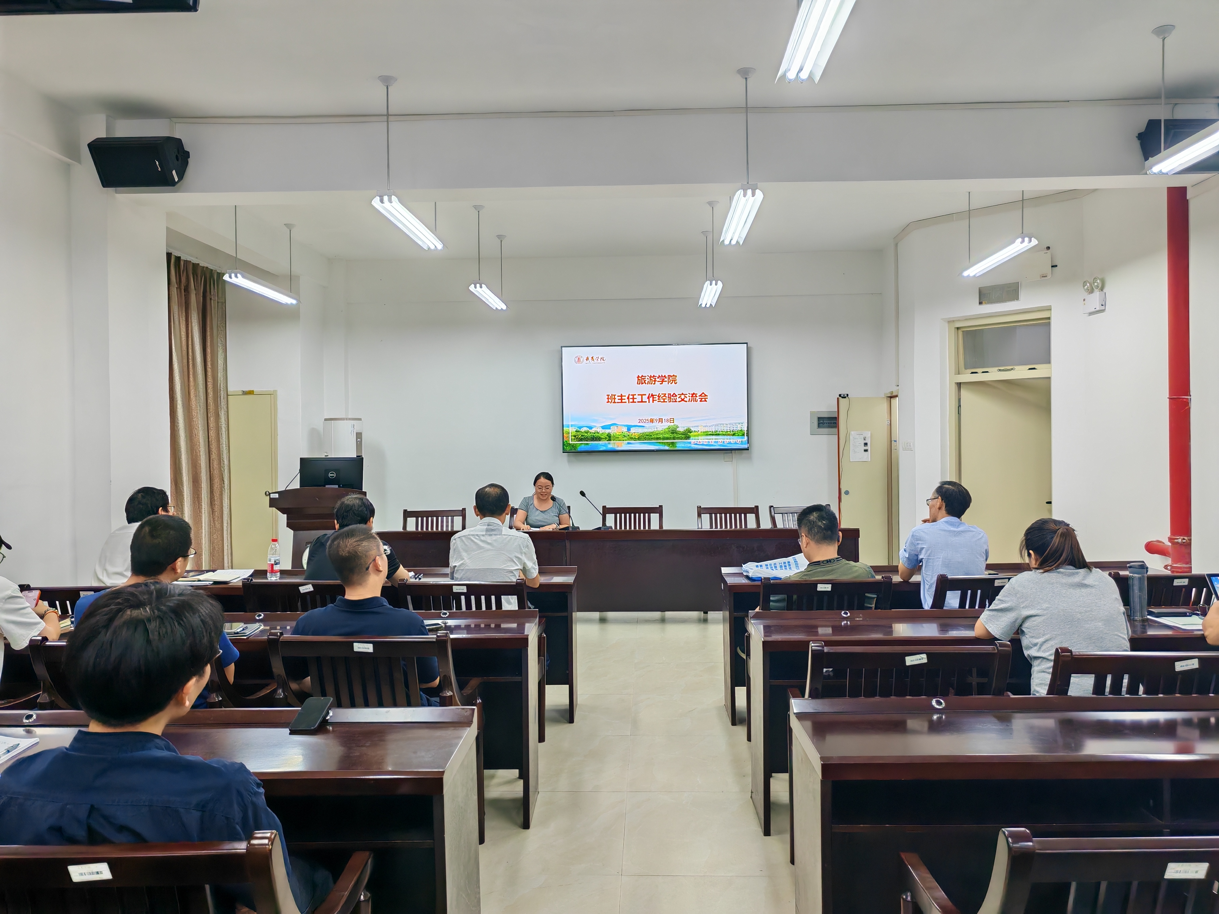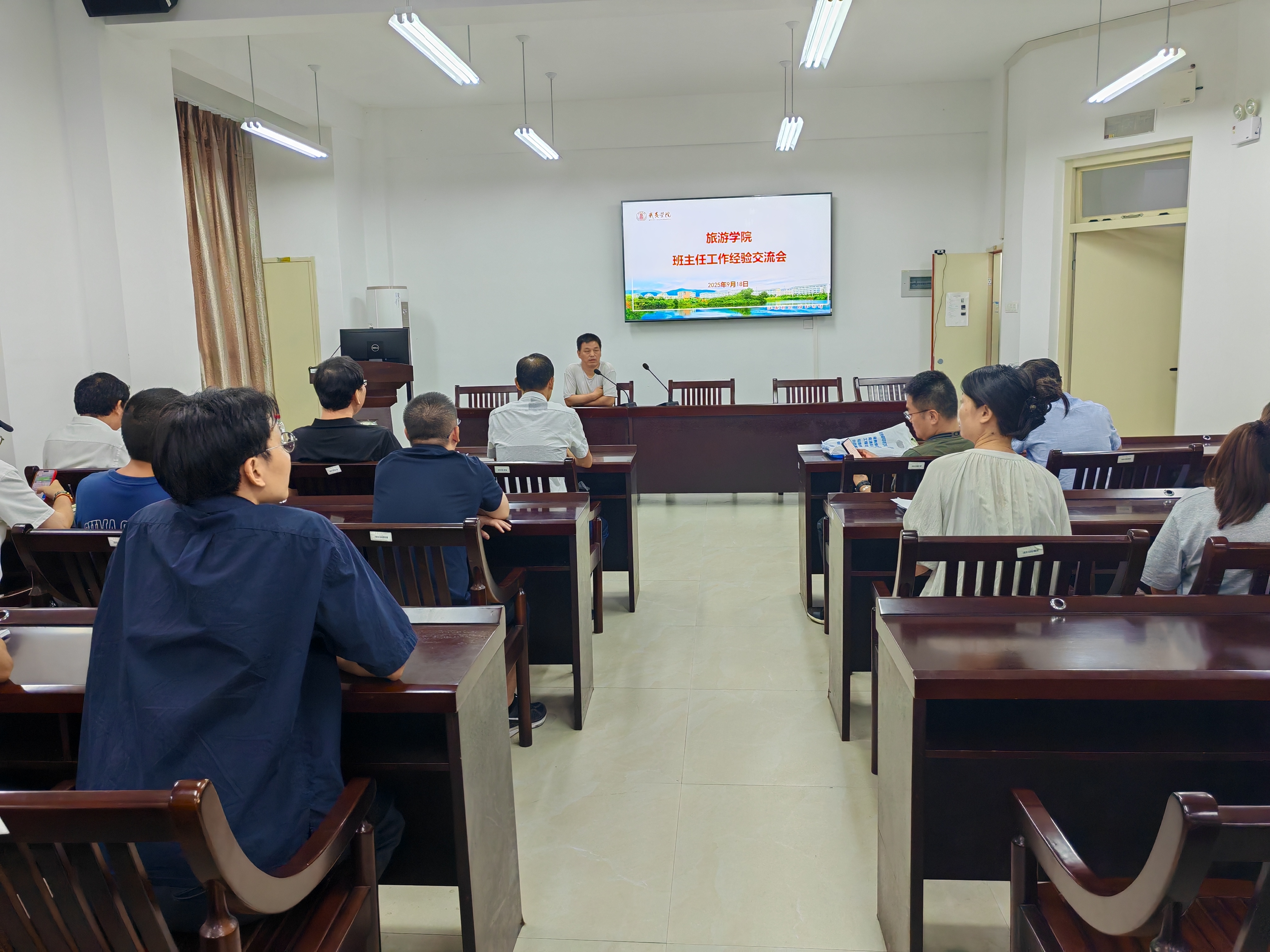 9月18日下午,旅游学院班主任工作经验交流会在同文7-211会议室召开。学院党委书记祁少华,副院长(主持工作)郭伟锋,党委副书记张达青,班主任和全体辅导员共同参会,会议由学院党委副书记张达青主持。